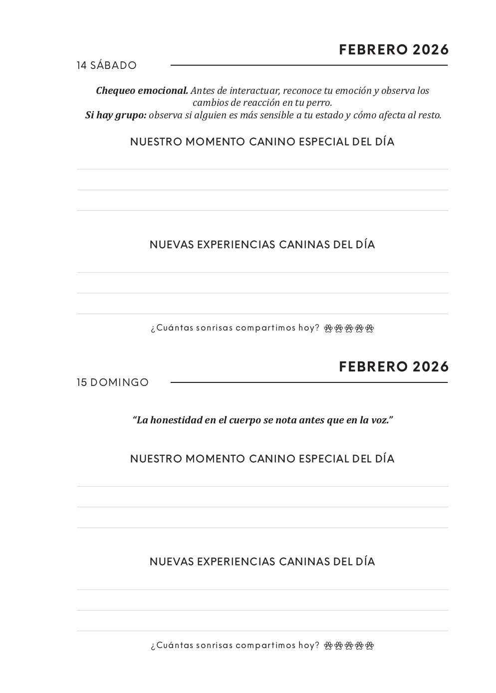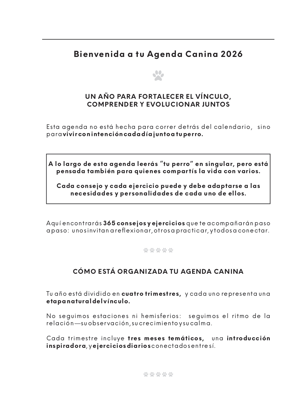 Con la Agenda Canina 2026 vivirás 365 días de aprendizaje, calma y conexión real con tu perro.